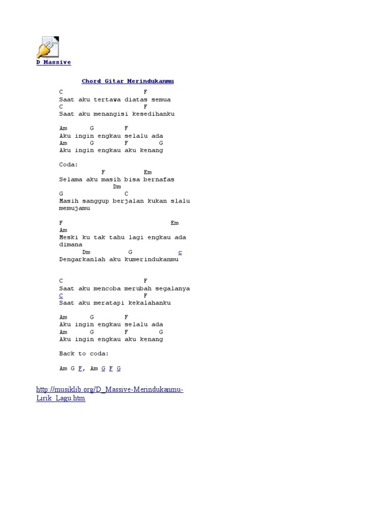 D Massive Chord Gitar Merindukanmu Lirik Lagu Htm