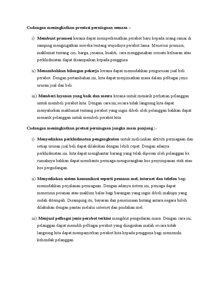 21 Cadangan Rumusan Docx Cadangan Untuk Meningkatkan Prestasi Perniagaan Jangka Pendek I Mengadakan Promosi Jualan Besar Dengan Adanya Promosi Lebih Course Hero