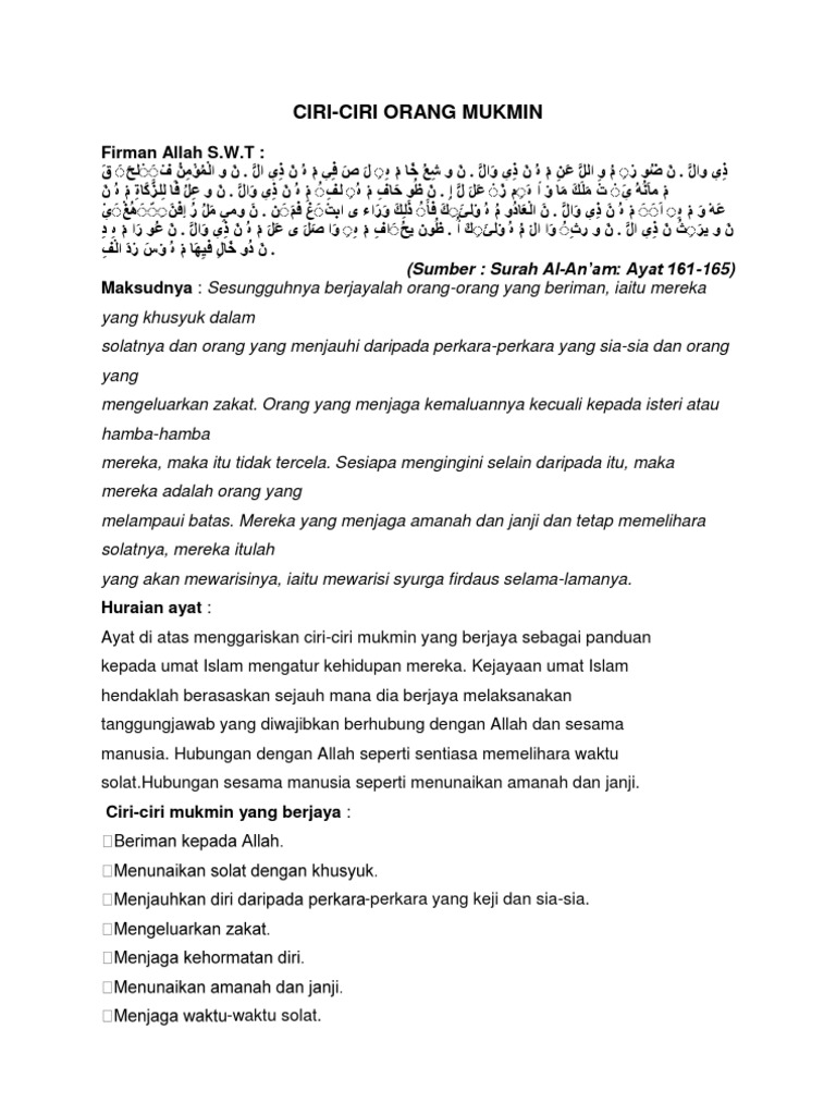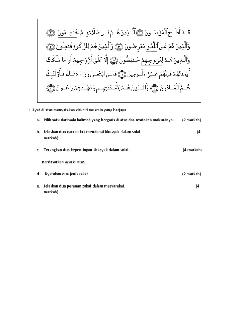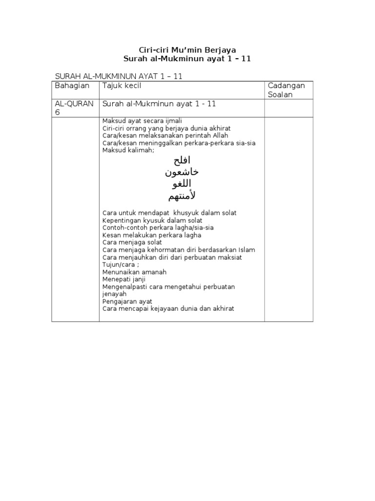 Ciri Mukmin Berjaya Sural Mukminun Ayat 1 11 Tingkatan 4