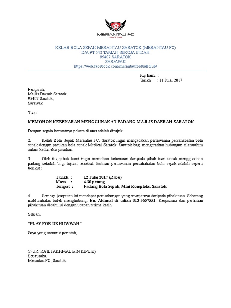 Surat Rasmi Permohonan Sewa Padang Rasmi L