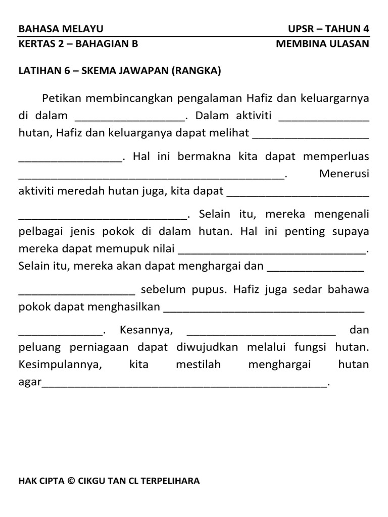 Bahasa Melayu Upsr Tahun 4 Kertas 2 Bahagian B Membina Ulasan Latihan 6 Clip Art