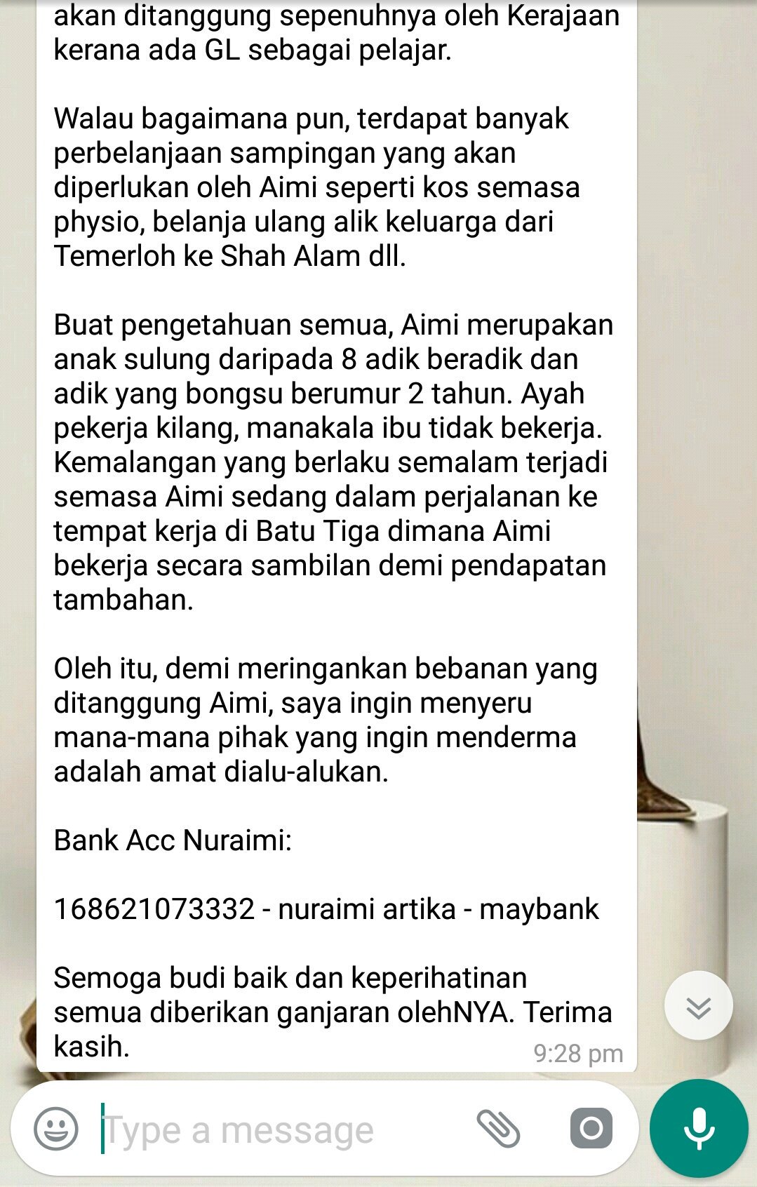 The Huda On Twitter My Friend Aimi And Shu Just Got Into An Accident Aimi Is In Dire Need Of Your Help She S A Final Year Law Student That Is About To