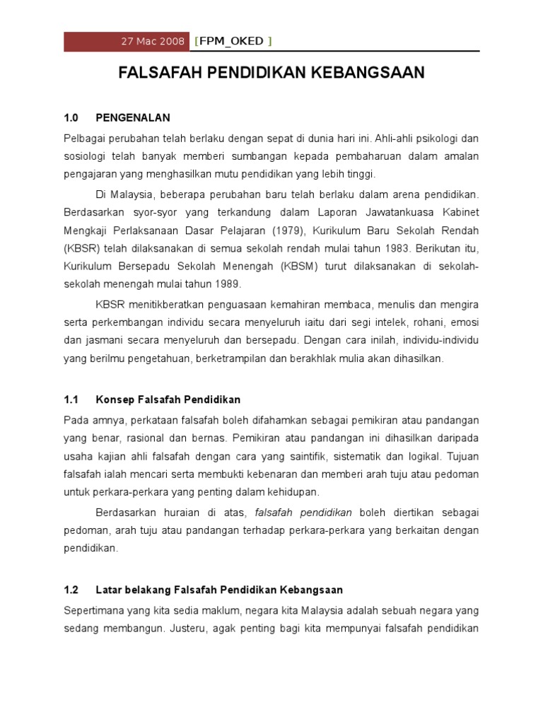 Falsafah Pendidikan Kebangsaan Docx