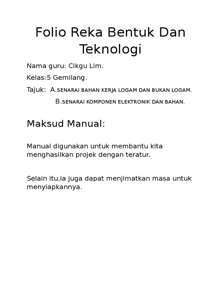 Folio Reka Bentuk Dan Teknologi Tahun 6