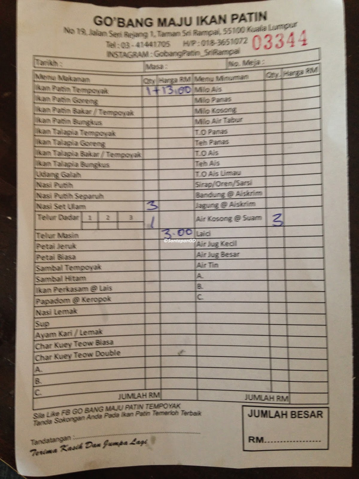 Santapangd 15 Mac 2015 Restoran Go Bang Maju Sri Rampai Kuala Lumpur Masakan Melayu Gulai Patin Tempoyak Temerloh