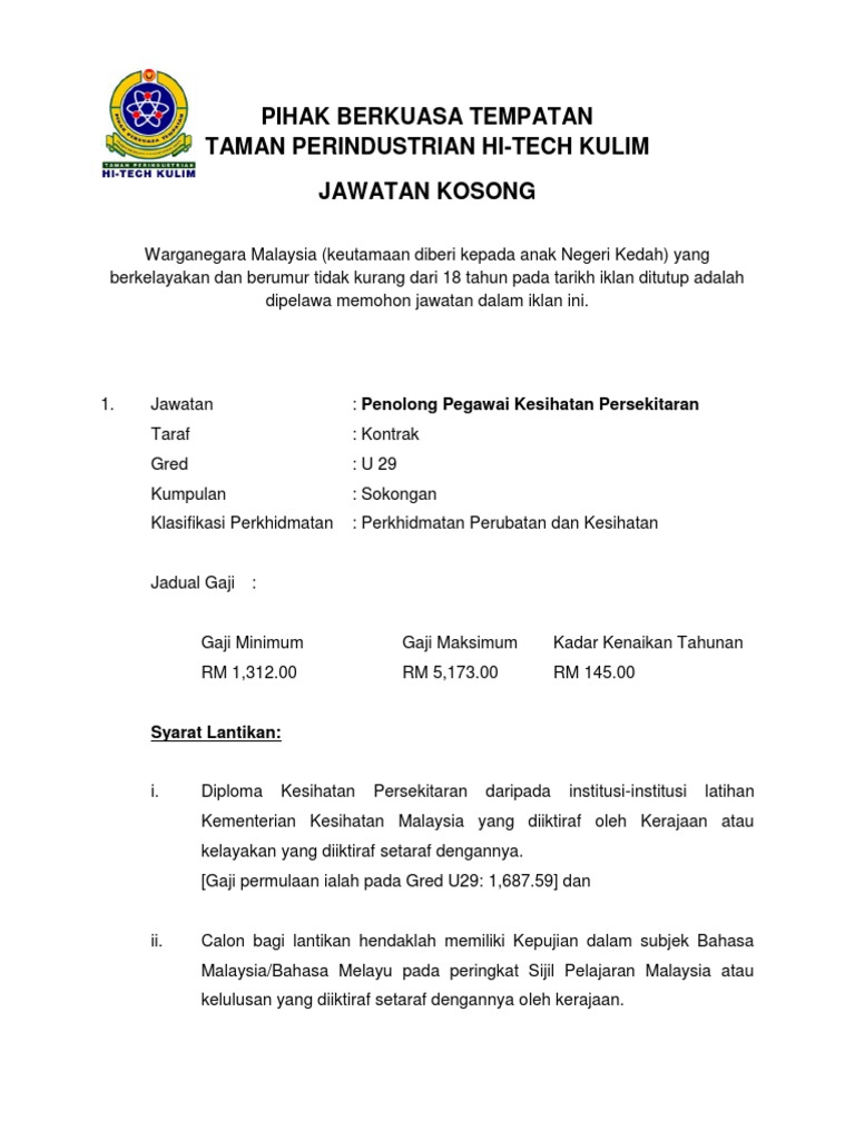 Iklan Jawatan Kosong Pbt Kulim Hi Tech151213