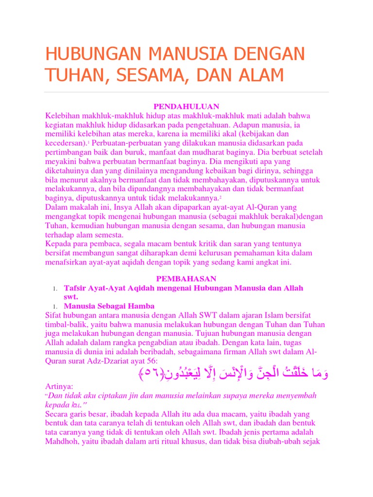 Hubungan Manusia Dengan Allah Manusia Dan Alam