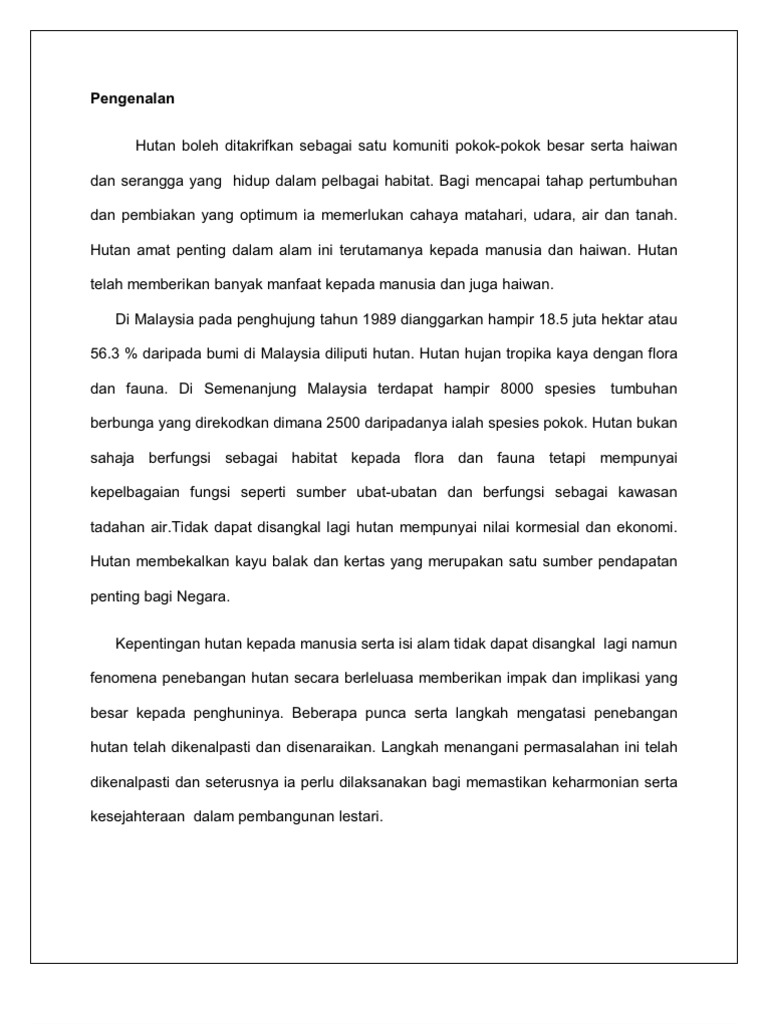 Karangan kesan penerokaan hutan spm. Hutan telah membekalkan negara kita dengan pelbagai sumber seperti kayu kayan dan ubat ubatan. Penerokaan petroleum dan gas asli di luar pantai terengganu sabah dan sarawak menyebabkan. Karangan contoh gejala penerokaan hutan secara haram semakin berleluasa sejak akhir akhir ini. Contah karangan adalah untuk panduan pelajar berkemahiran sederhana dalam penulisan karangan.