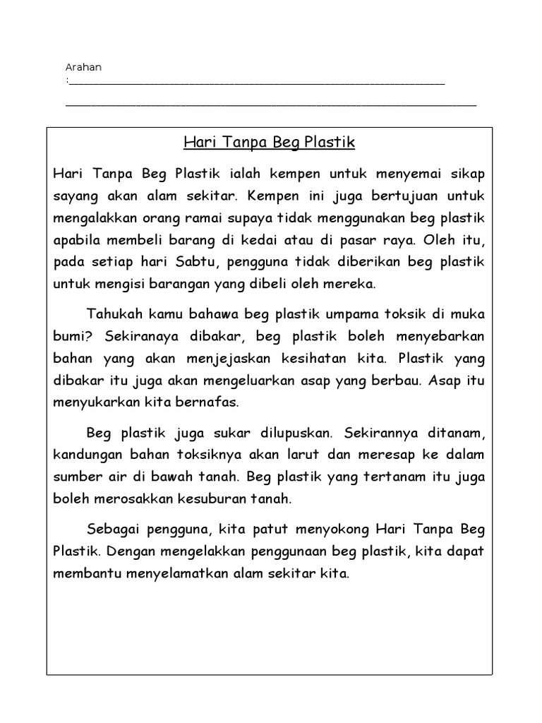 Hari Tanpa Beg Plastik Karangan