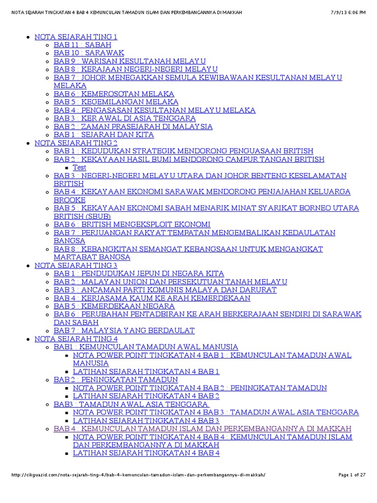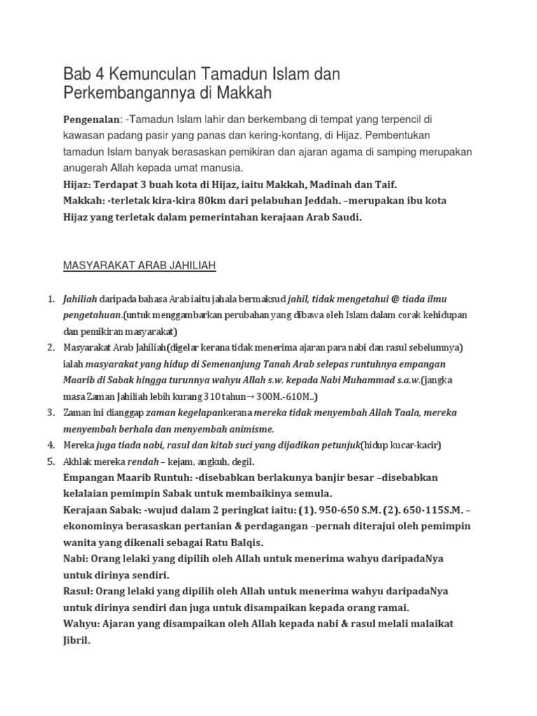 Nota Sejarah Tingkatan 4 Bab 4 Kemunculan Tamadun Islam Dan Perkembangannya Di Makkah
