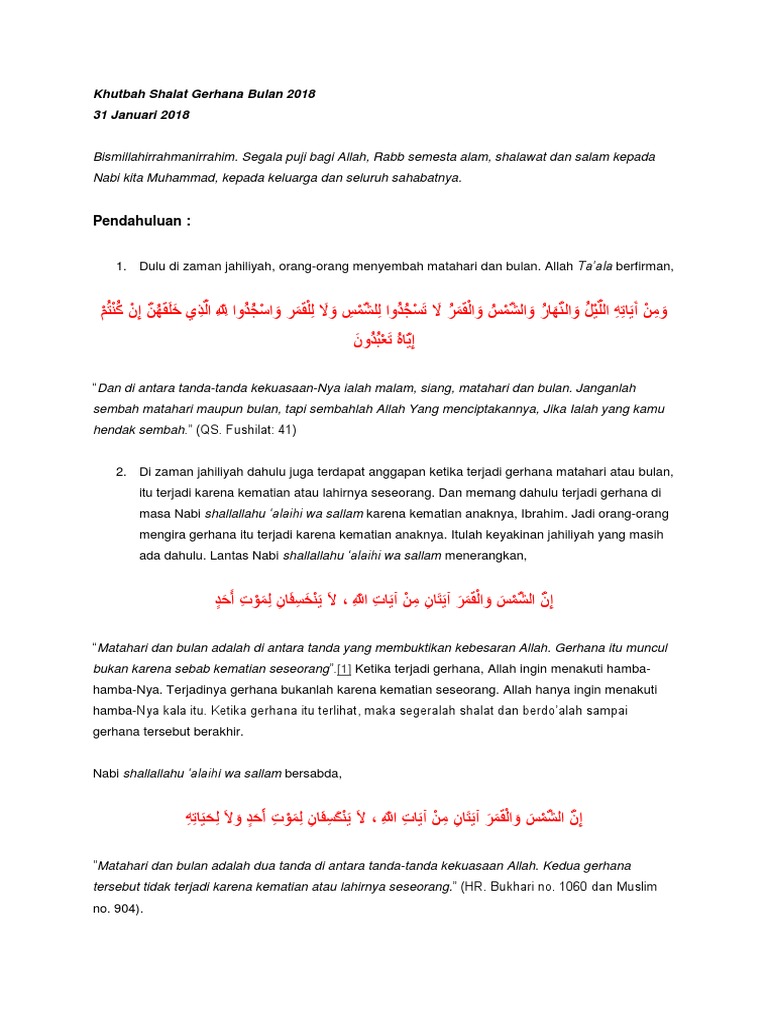 Khutbah Gerhana Bulan Total Tahun 2018 Ekomardion