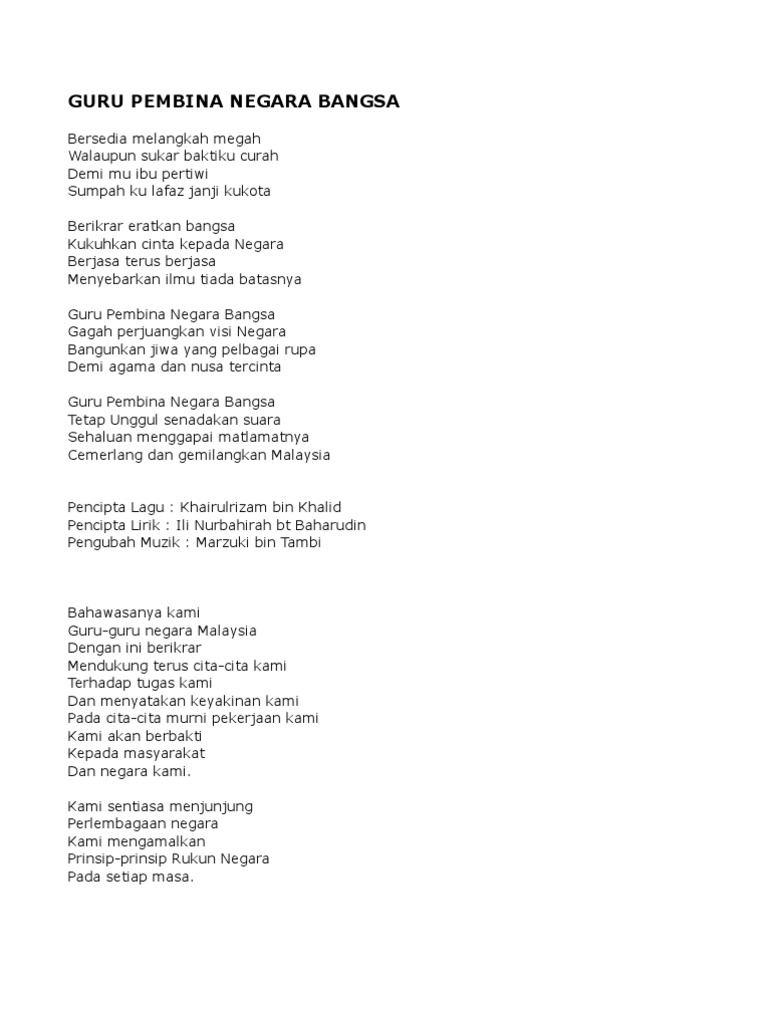 Lirik Lagu Guru Pembina Bangsa Negara Kisah Viral Malaysia Terkini