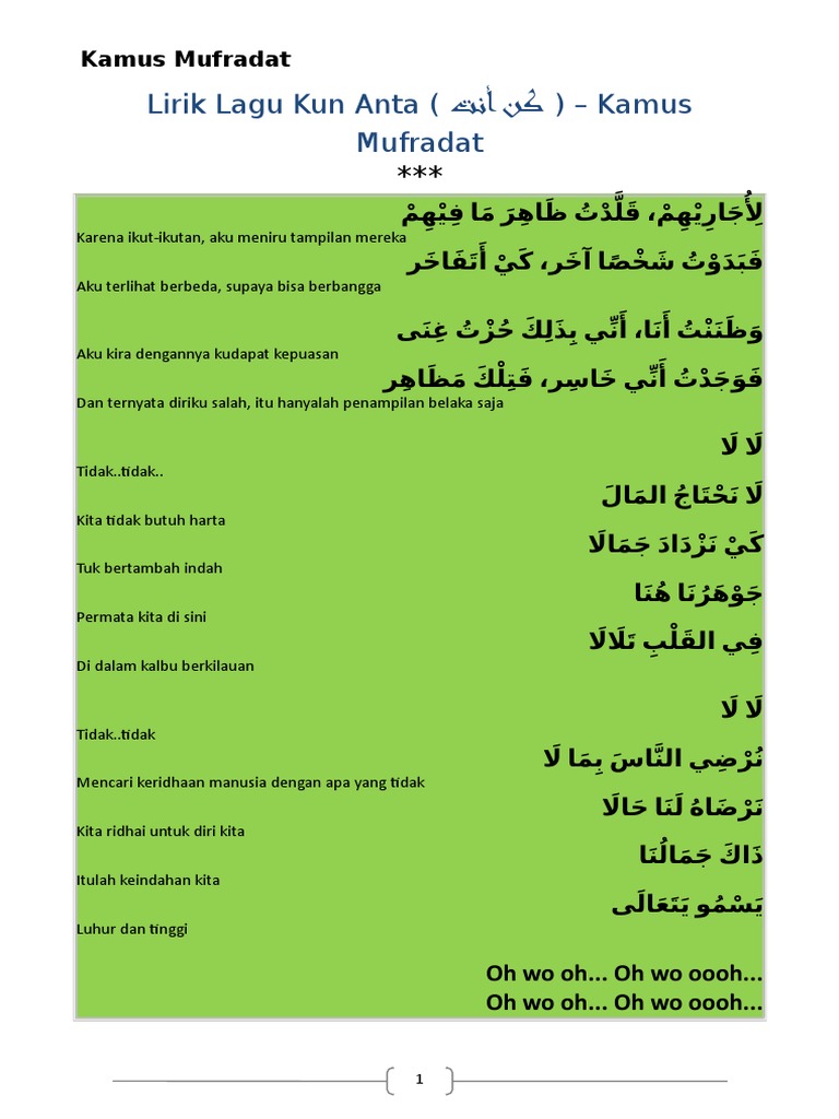 Lirik Lagu Kun Anta Arti Dan Mufradatnya Kamus Mufradat