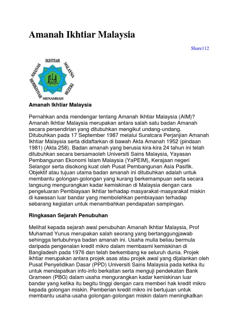 Amanah Ikhtiar Malaysia Amanah Ikhtiar Malaysia Aim