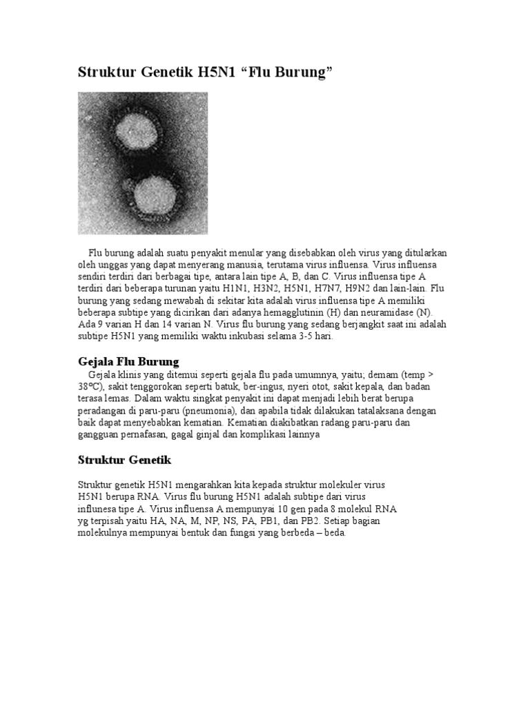 Flu Burung Burung Di Indonesia Virus Influensa Tipe A Subtipe H5n1 Tersebu T Diatas Menyerang Ternak Pdf Document