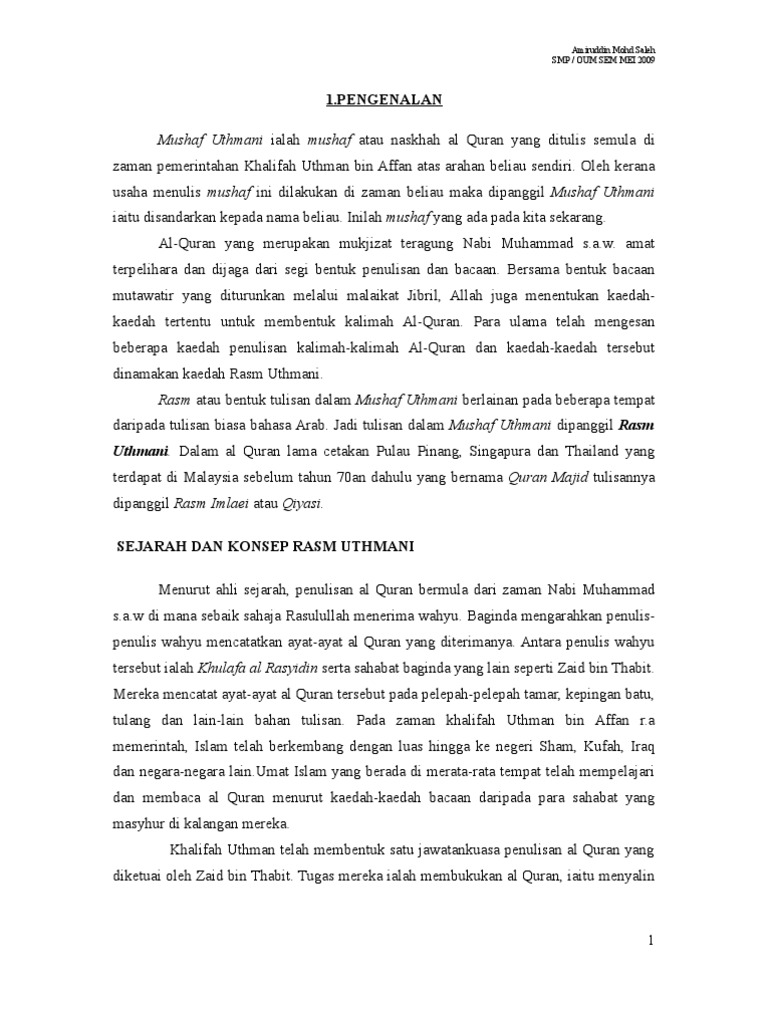 Sejarah Penulisan Dan Perkembangan Rasm Uthmani Pdf Document