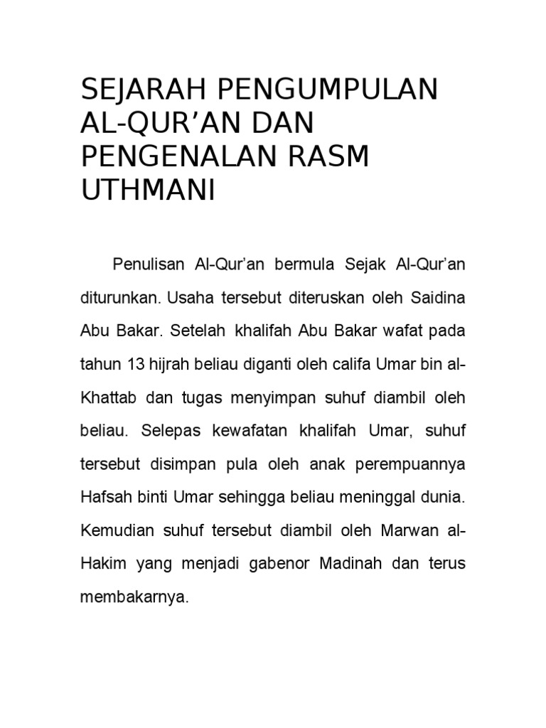 Sejarah Penulisan Rasm Uthmani Pdf Document