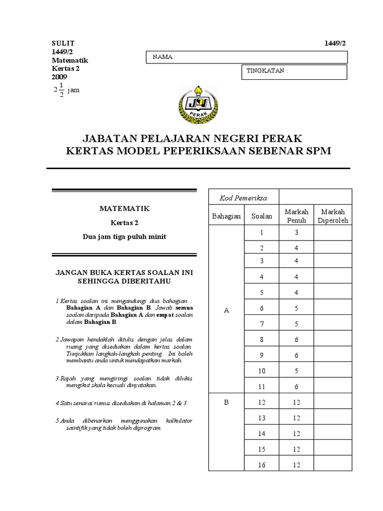 Kertas 2 Matematik Percubaan Spm 2017 Sbp