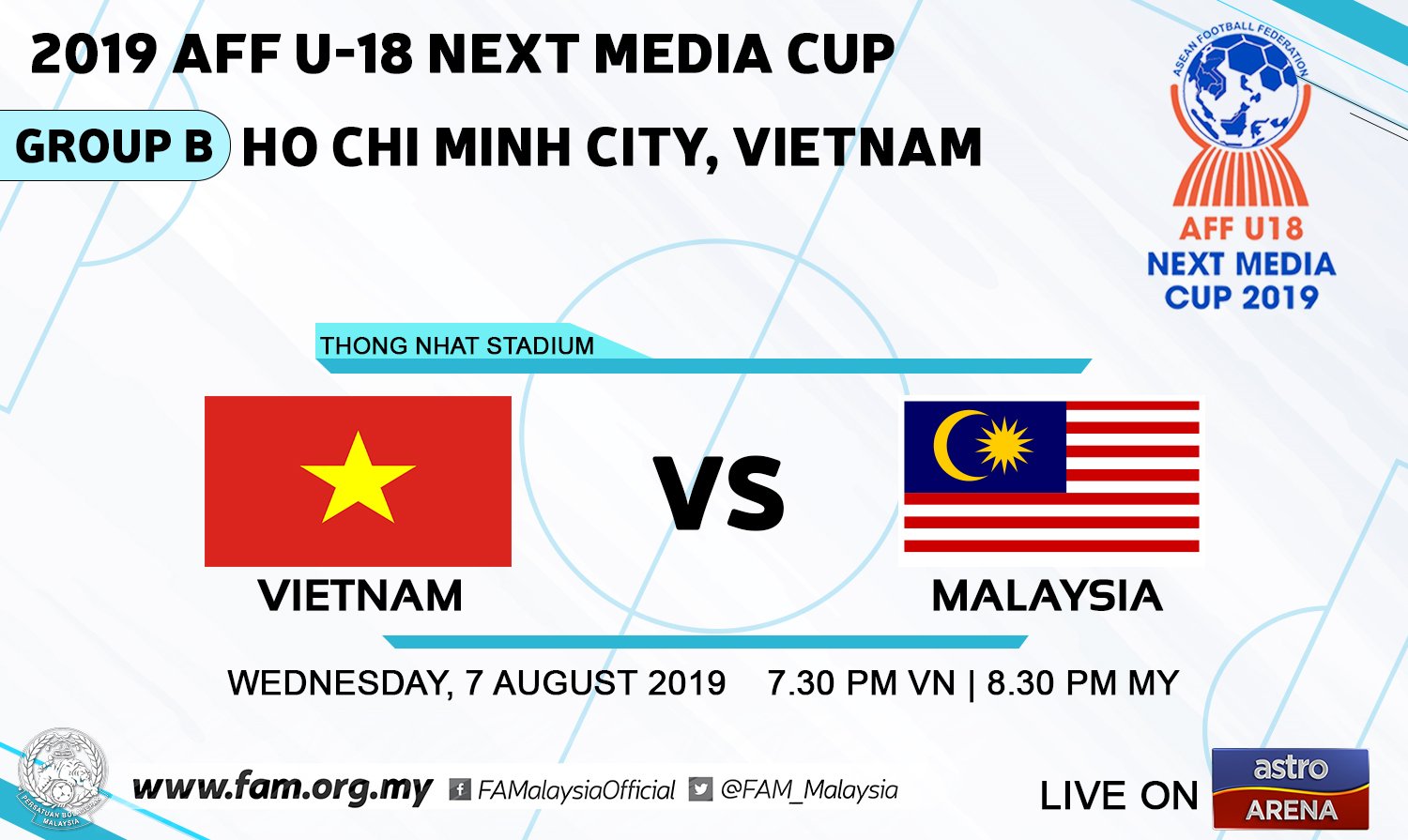Fa Malaysia On Twitter 2019 Aff U 18 Next Media Cup Wednesday 7th August 2019 Matchday 1 Group B Vietnam Vs Malaysia Thong Nhat Stadium Ho Chi Minh City 7 30 Pm 8 30